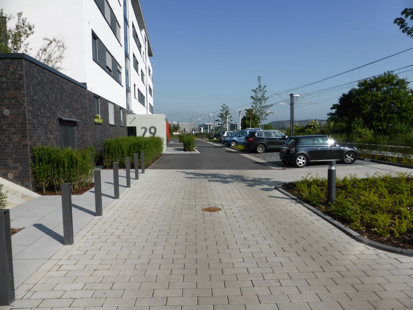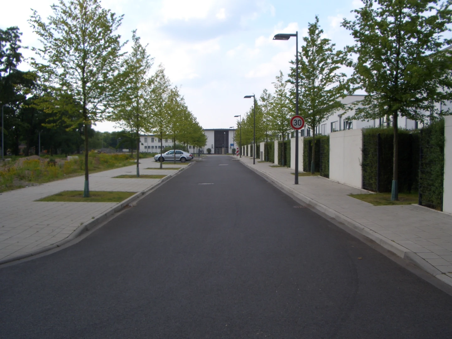 Eine besondere Herausforderung stellte die Abwicklung des prognostizierten zusätzlichen Verkehrsaufkommens dar, wobei eine größtmögliche Ausnutzung der Baufelder berücksichtigt werden musste. Die leistungsgerechte Abwicklung der neuen Verkehre konnte unter anderem durch eine wesentliche Verbesserung der ÖPNV-Anbindung, insbesondere durch die Führung einer neuen Stadtbahntrasse durch das Plangebiet, erreicht werden. Auch die Radverkehre fanden im Plangebiet besondere Berücksichtigung. Die Straßenquerschnitte varieren von 4,00 m breiten Wohnwegen bis hin zu 30,00 m breiten Haupterschließungsstraßen, einschließlich der parallel verlaufenden Stadtbahntrasse.