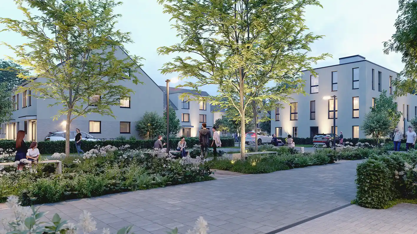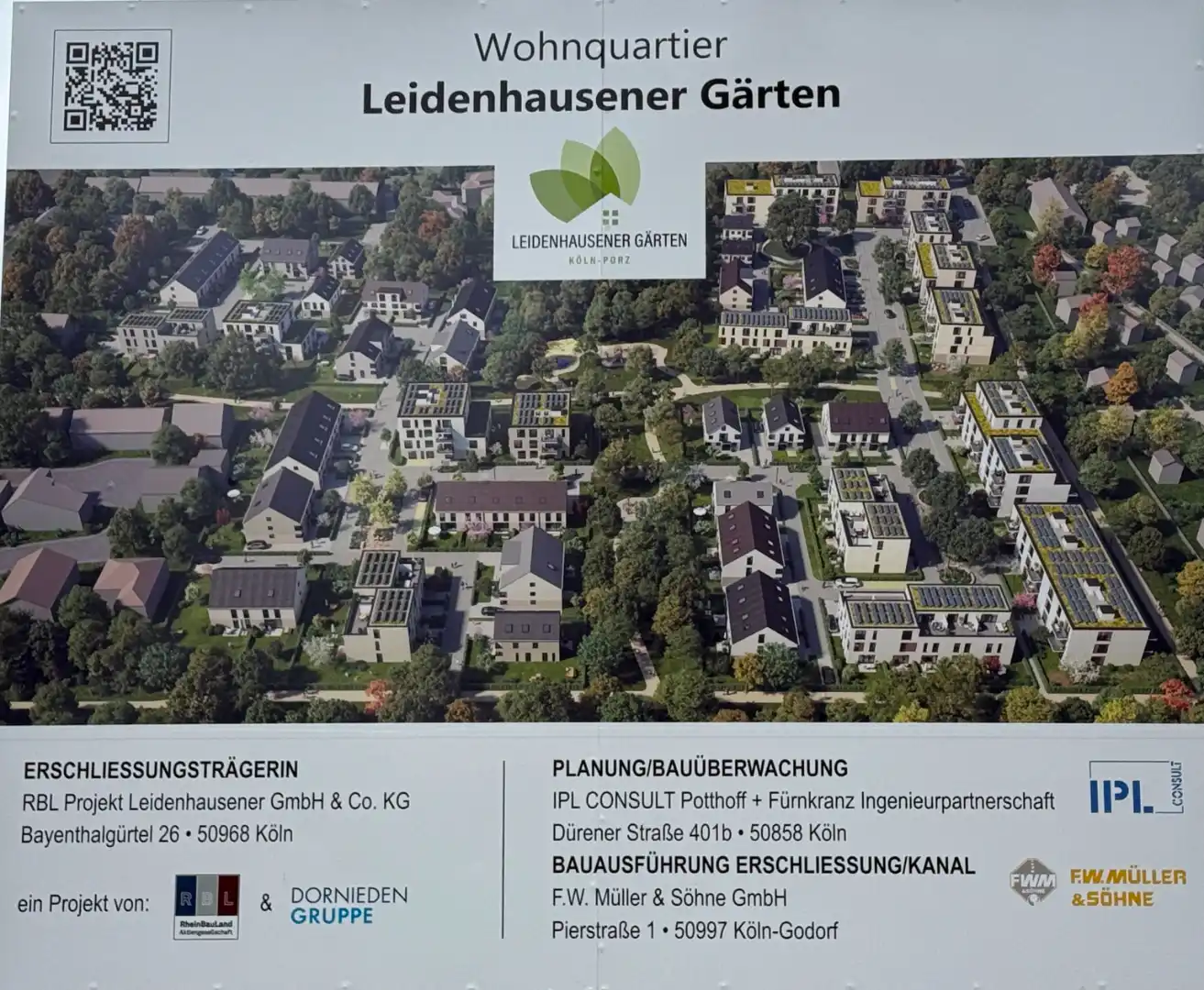 In den „Leidenhausener Gärten“ werden auf einem Areal von 4,4 ha in Köln-Porz-Eil insgesamt 220 neue Wohneinheiten entstehen. 77 Einzel-, Doppel- und Reihenhäuser sowie Wohnungen in neun Mehrfamilienhäusern gruppieren sich um 4 Quartiersplätze, welche durch eine attraktive 7.500 m² große Grünanlage mit einem eingebetteten Spielplatz miteinander verbunden werden. Die Auftraggeberin hat in Zusammenarbeit mit der Stadt Köln in diesem Projekt das Planungsrecht geschaffen. Der Bebauungsplan ist 2024 rechtskräftig geworden.
