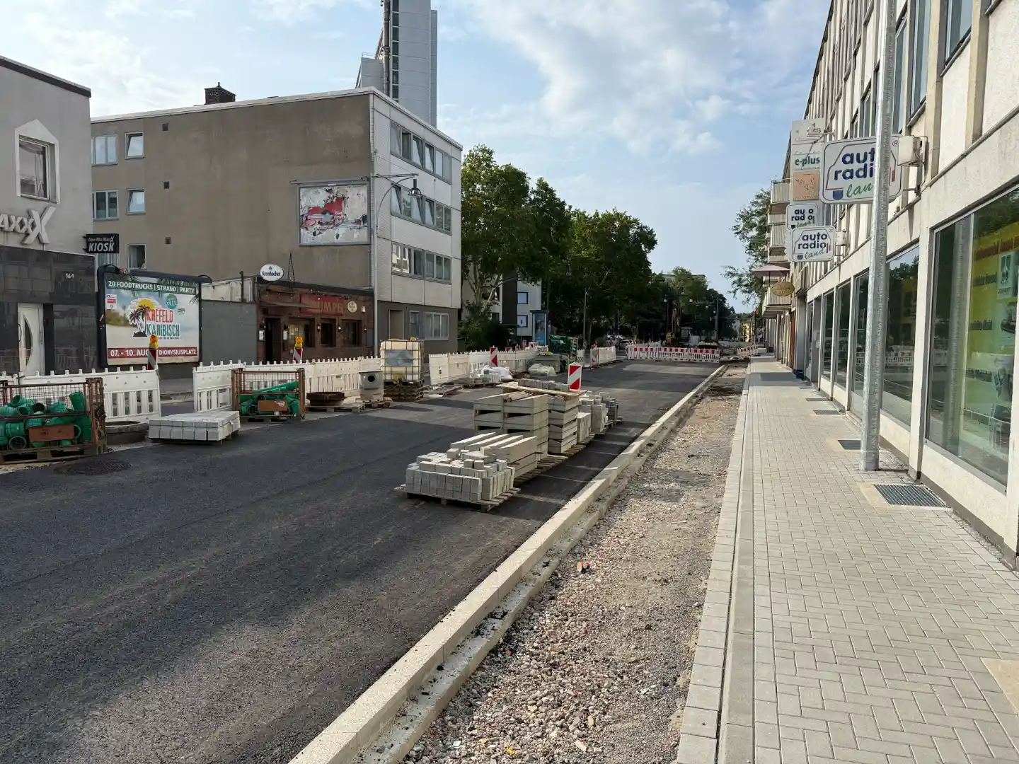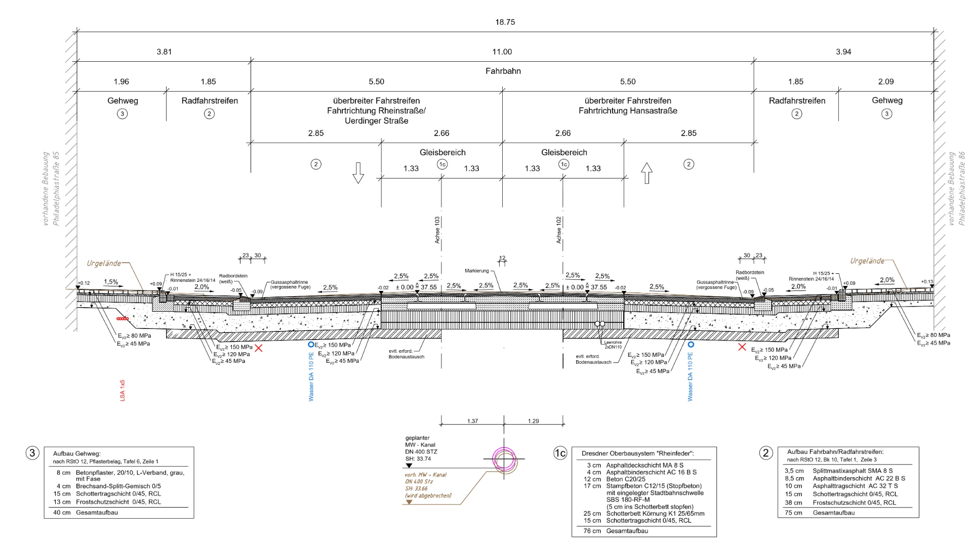 Die Stadt Krefeld hat parallel eine Sanierung des unter dem Gleiskörper liegenden Kanals durchgeführt. Die Vorgabe einer Alleebepflanzung in der Philadelphiastraße stellte aufgrund der zahlreichen Hausanschlussleitungen eine besondere Koordinierungsaufgabe dar.